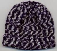 Paßt je nach Anschlag und fester oder lockerer Strickweise von Kopfumfang 23 bis 30 cm.