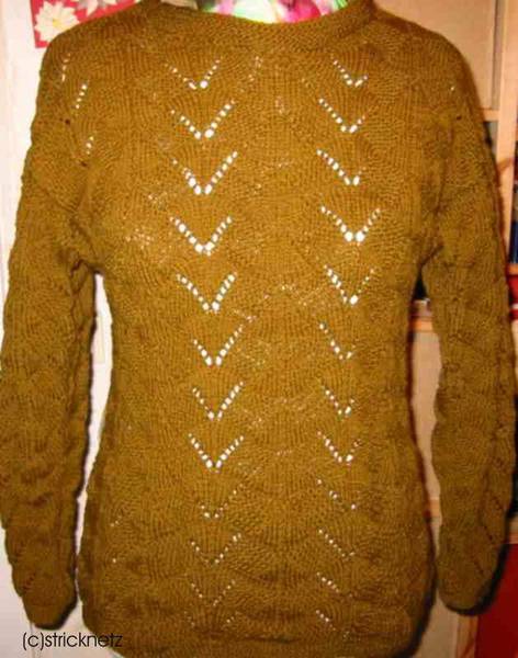 1 x 1 Masche abketten. Nach 196 Reihen (bzw. 14 Mustersätzen / ca. 64 cm) die restlichen 38 Schultermaschen abketten. 2. Seite gegengleich beenden.
