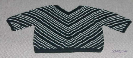 Die Weite der Ärmel kann über die Maschenabnahme an der Schräge (*siehe ersten Absatz bei Ärmel) gesteuert werden.