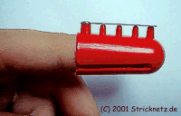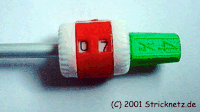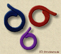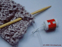 Die Reihenzähler werden auf das Nadelende oder bei Rundnadeln auf die Nadel gehängt. Beim Reihen oder Rundenwechsel wird die Skala einfach um eine Zahl weitergedreht und man weiß immer, wie viele Reihen man gestrickt hat, vorausgesetzt, man macht das Weiterdrehen konsequent und vorausgesetzt, die lieben Kinderchen haben nicht dran rumgespielt.![]()