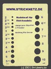 Vor Allem bei einem Nadelspiel sehr hilfreich, da hier die Nadelstärke nicht aufgedruckt ist. Einfach die Nadeln durch die Löcher stecken und sehen wo sie passen. Die entsprechende Stärke steht dann jeweils unter oder neben dem Loch. (So nach 1-2 Stunden Üben ein durchaus nützliches Werzeug *breitgrins*)