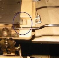 Die Sperrschiene hat ein Schaubstoffpolster, das die Nadeln nach unten drückt. Läßt der Druck nach, sind die Nadeln nicht mehr in der richtigen Position und die Maschine verweigert den Dienst.