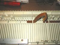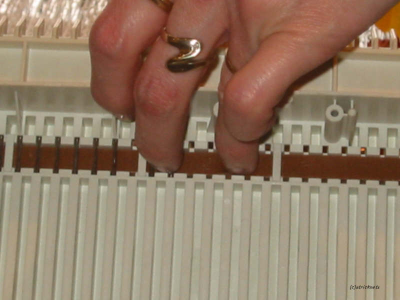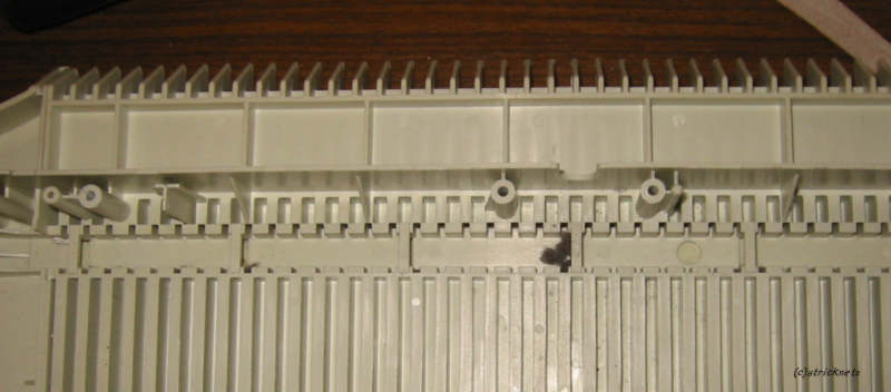 Auch der Mittelstricker von Brother, die KX 350, hat so etwas wie eine Nadelsperrschiene. Der Wechsel derselben ist aber etwas aufwändiger als der der anderen Maschinen.