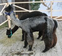 Als Babyalpaka wird eine Faser bezeichnet, die eine maximale Stärke von 22,5 Micron aufweist. Die Faser der ersten Schur eines Alpakas kann in der Regel nicht gut verarbeitet werden, da das Vlies meist zu "offen" ist und daher schlecht miteinander haftet. Gute Handspinner schaffen das wohl, Wollmühlen lehnen das eher ab, da nicht gewährleistet ist, das diese Wolle sich gut stricken lässt. Jedes Alpaka, gleich welchen Alters, mit sehr guter Faser kann ab der zweiten Schur unter diesem Micronwert bleiben und das ist dann unter der Bezeichnung Babyalpaka zu kaufen.