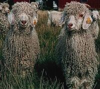 Kidmohair ist die Wolle der Mohairziege, wenn sie noch kein Jahr alt ist. Es ist deshalb weicher und feiner als Mohair, aber auch weniger stabil.