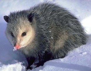 Das Opossum ist eine kleine, ca. 50 cm lange Beutelratte. In früheren Zeiten hat man das Opossum getötet um aus seinem Fell Mützen, Taschen und Handschuhe zu machen (diese Mütze mit den Schwänzen, wie Lederstrumpf eine hatte).