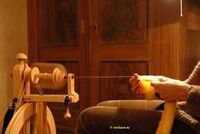 Viele, die auf Märkten, Treffen, in geselliger Runde oder wo auch immer, mal ein Spinnrad in Aktion gesehen haben, kommen ins Grübeln. Sie saugen sich mit ihren Blicken an dem sich rasch drehenden Spinnflügel fest, lassen sich vom Säuseln des Rades einlullen. Es hat schon fast hypnotischen Charakter, ein Mancher hat schon alles um sich herum vergessen, als er einer Spinnerin zusah. Die Welt um einen herum erscheint plötzlich so weit weg, so fern ...... Ähem... zurück zum Thema.